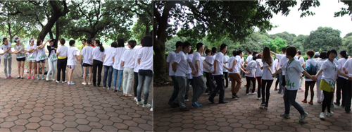 视团队队员的男女比例、年龄情况组织进行2-3个团队热身游戏,目的让队员之间增进了解,消除隔阂,逐步增进队员的团队意识。为拓展活动作前期准备。