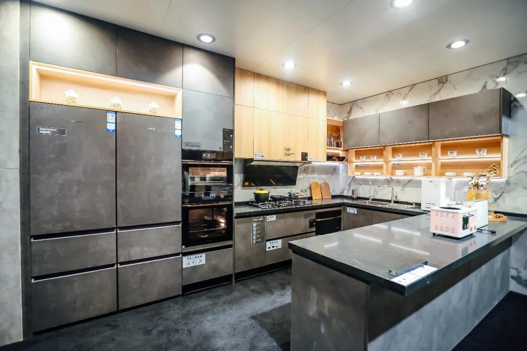 卡萨帝为展示智慧厨房,就在现场准备一个场景:冰箱不仅能储鲜珍贵食材更新鲜,还能实现一键下单生鲜及时到家。除此之外,烟机也会自动开启,并根据使用习惯自动设定是否打开烟机照明灯及风量大小……
